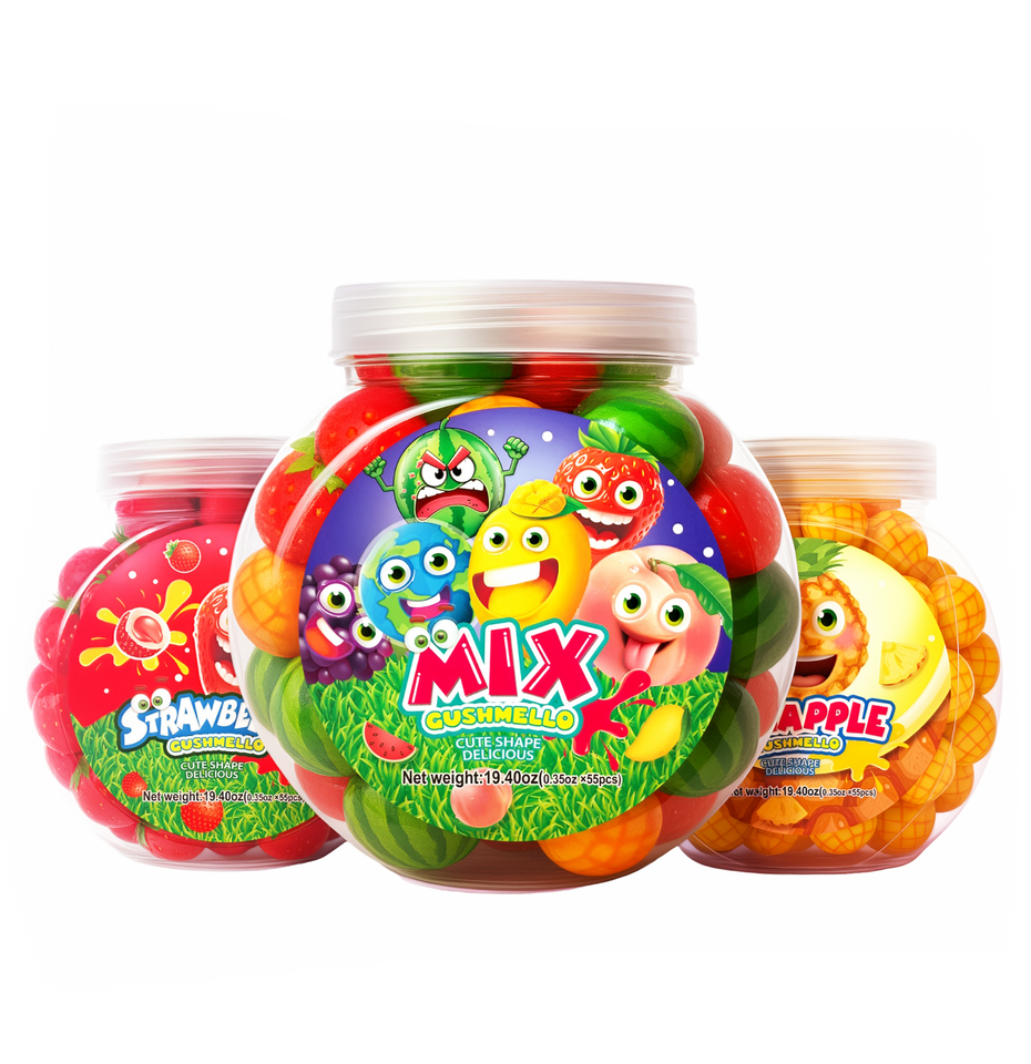 Life feels brighter with a jar of Zoomi Gushmello by your side. These fruity gooey candies are designed tosurprise your taste buds and satisfy every craving. The combination of chewy gummy texture, marshmallow softness, anda gush of gooey flavor creates a candy experience unlike anything else.Bursting with bold fruitiness, each piece is playful, colorful, andirresistible, making it perfect for study breaks, parties, or simply treatingyourself to something sweet.